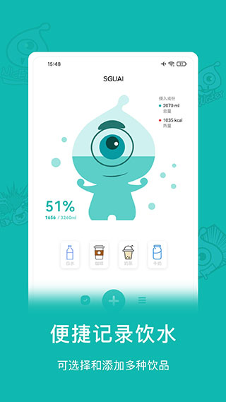 4、喝纪录:清晰纪录日常饮用水量和种类。