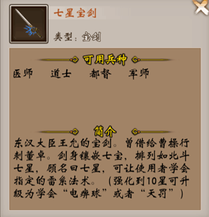 兵器谱新增神兵:七星宝剑