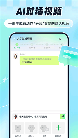 可输入剧本、段子、故事等内容,AI大模型会自动分析剧本中的角色动作和情绪,一键生成角色表演,告别传统制作方式,真正做到一分钟完成动画视频制作!
